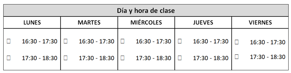 Para realizar una nueva matrícula, ponte en contacto con nosotros y te informamos sobre la disponibilidad de días y horas, buscando el grupo que mejor se adapte al alumno.
